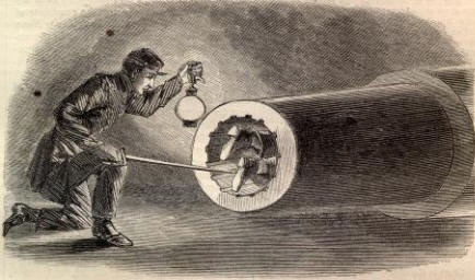 A short search was then conducted aboard the Scott. While Dr. Mudd’s own accounts lack the details of his discovery, several newspaper articles reported that he was found after an officer was, “running his saber under an old box in the coal bunker” when “the cold steel coming into contact with the latter end of Dr. Mudd, made him cry out and come out.”