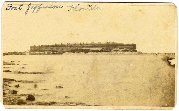 When the sentences came in for the Lincoln assassination conspirators, Samuel Arnold, Michael O’Laughlen, Edman Spangler, and Dr. Samuel Mudd all received imprisonment. Arnold and O’Laughlen were given life sentences for their involvement in plotting the kidnapping of the late President with John Wilkes Booth. Though the kidnapping never occurred, the law of conspiracy made them accountable for when the plot turned to assassination. Ned Spangler received a comparatively light sentence of 6 years for essentially being an acquaintance of Booth’s and helping to hold his horse. Dr. Mudd was also given a life sentence for aiding Booth during his escape by fixing his leg and for lying to investigators about his previous relationship with him. The four were shipped to Fort Jefferson, an isolated fort located on the Dry Tortugas islands off the coast of Florida, to carry out their terms.