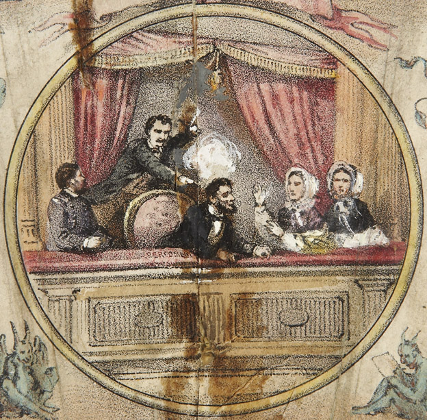 I would like to use the image from the fan of Our American Cousin for a production in London. Could you tell me if this image is in the public domain? I can’t find the fan on the Lincoln Bookshop website. Thanks!