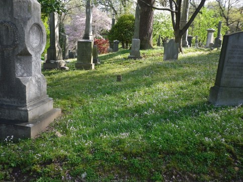 There are also those to whom, markers were never created.  In these instances we are sometimes fortunate to have cemetery records to tell us who has been placed where.  This is the case of the Surratt Society’s current drive to place a marker on the grave of Frederick Aiken.  Aiken was one of the lawyers who defended Mary Surratt at the Conspiracy trial.  A tremendous amount of research into Mr. Aiken’s life was done by researcher Christine Christensen.  Her 28 page biography about this man’s extraordinary life is available through the Surratt House Museum and has been the catalyst for soliciting donations to mark his grave.  He is currently unmarked in Georgetown’s Oak Hill Cemetery: