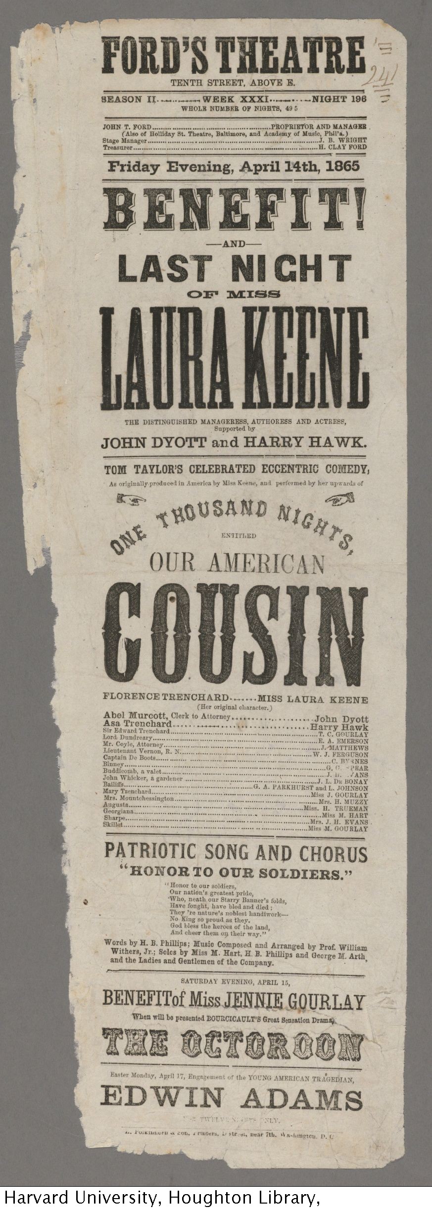 A true playbill from Ford’s Theatre on April 14th, 1865.