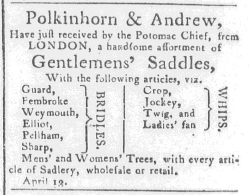 In the paragraph below the photograph of H. Polkinhorn, Sr. & the 1797 saddle advertisement, Henry Polkinhorn, Jr.’s family life is covered [i.e., “As a young man, Henry Polkinhorn, Jr relocated to D.C. and married Marianne Brown in 1839. Together Henry and Marianne had six children. Marianne died in 1857 and Henry married Rachel Ann Barnes less than two years later. . . .”]