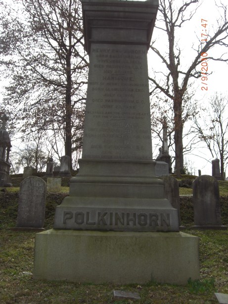Marianne & Henry also had a daughter named Emma (born 1856 – died 1858). Both Emma’s are listed on the Polkinhorn monument in D.C.’s Oak Hill Cemetery (where Barnes & Polkinhorns are interred).