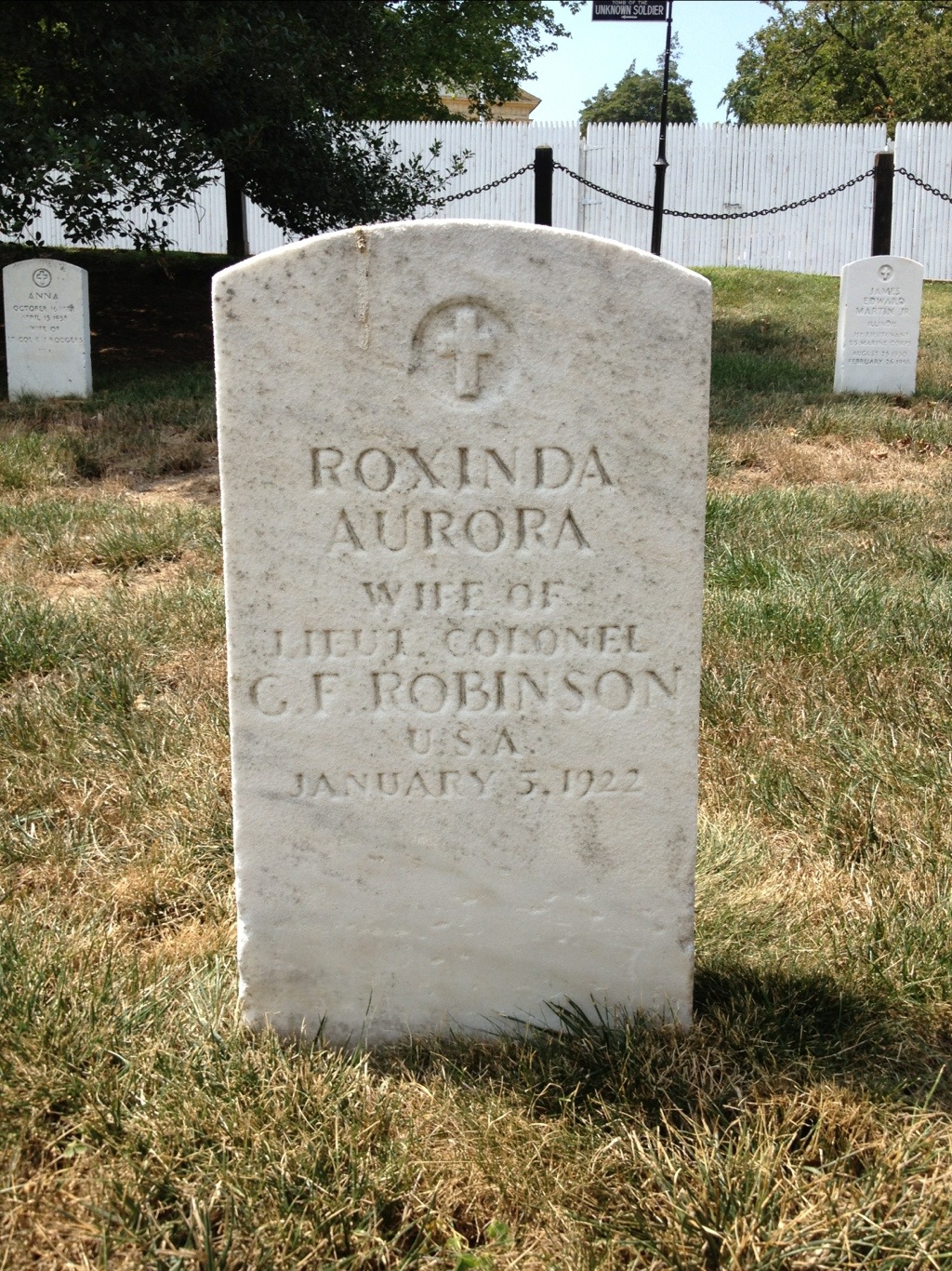 Today he rests in Arlington next to his wife Roxinda Aurora: