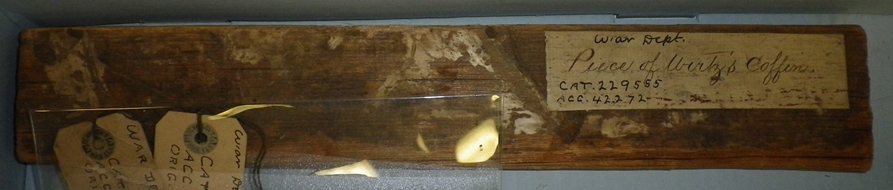 Piece of Henry Wirz’ coffin in the collection of the Smithsonian’s American History Museum.
