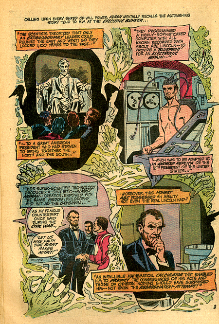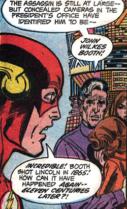 As entertaining as that rendition is, however, my favorite incarnation of the assassination of Abraham Lincoln in the comic book realm is this 1971 issue of The Flash: