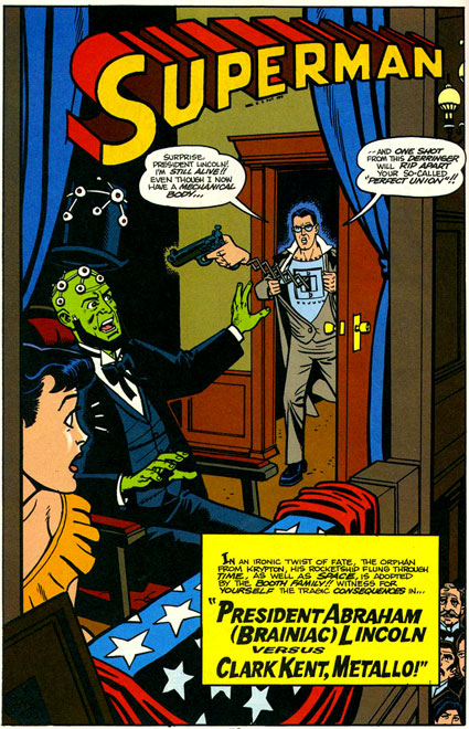 The assassination of Abraham Lincoln at the hands of John Wilkes Booth was a defining moment of American history. It was a national tragedy the likes of which we had never experienced. It turned Lincoln into a martyr and changed the course our country would take after a devastating Civil War. For this reason, the assassination of Abraham Lincoln has become perfect fodder for the imaginative minds of comic book writers. Through this artful medium, Lincoln’s assassination has been remembered, revised, and completely reinvented to match the worlds in which superheroes like Superman, Batman, The Flash, and others exist. Most references to the assassination in comic books are brief but a select few have devoted serious attention to America’s great drama of April 14th, 1865.