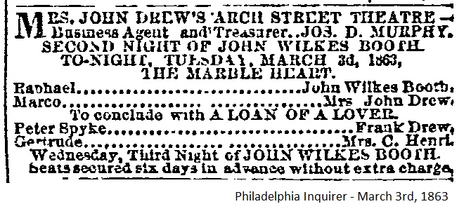 Rose and Asia saw this performance of their brother, John Wilkes.
