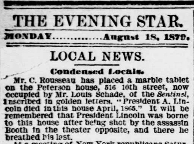 1879 Marble tablet at Petersen House