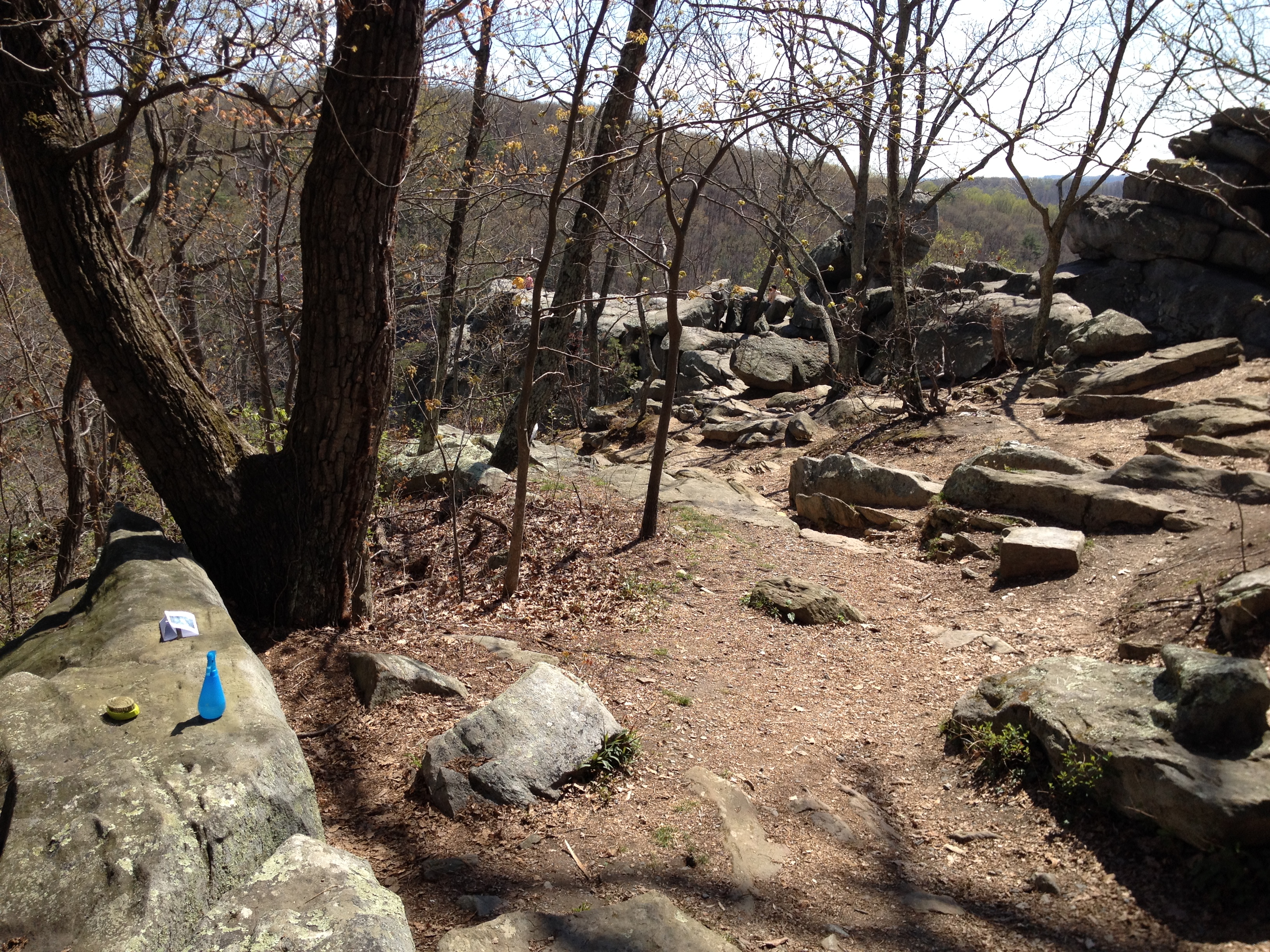 As helpful as this piece was (especially the picture of the carving), it did not give a detailed location of the carving at the site. In the days before GPS however, how exact could you really get? I played with the idea of revisiting the Rocks last summer to search for this carving but felt that, without a bit more to go on, the likelihood of discovering the carving was quite remote. I put it on the back burner pending some more investigation. Then, in August, I had the pleasure of sitting down with Michael Kauffman, author of American Brutus. I brought up the carving to him and my desire to look for it. Though it had been many years since he had visited the Rocks, he gave me his best recollections of it and even drew me a rough map on the back of a restaurant placemat. He wished me luck in my search but also expressed one caveat which will follow later.