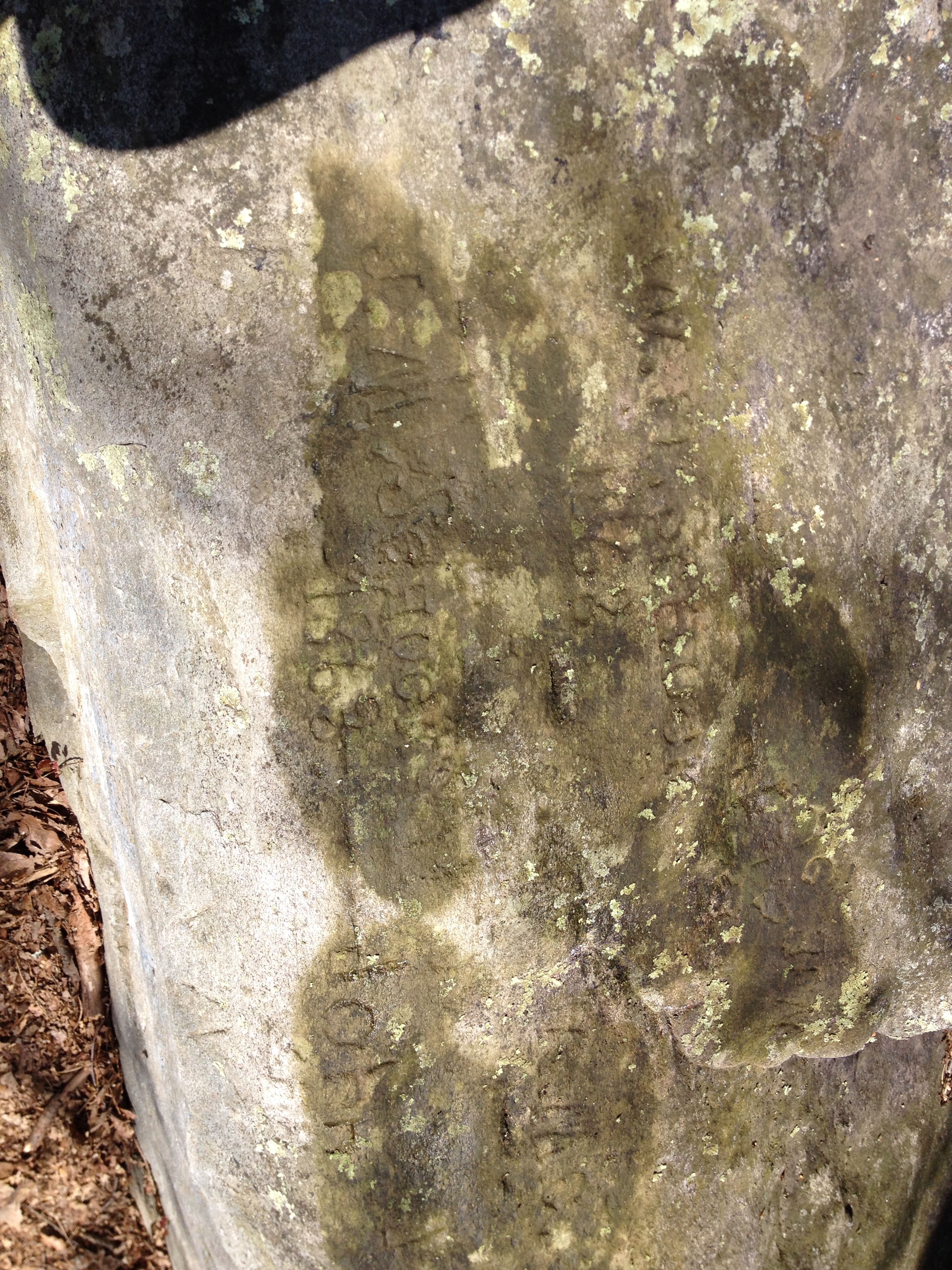 Armed with the scrawled map from Michael Kauffman, the above page from the Lincoln Log, a dish brush, and a spray bottle of water I drove to Rocks State Park and hiked up to the King and Queen Seat. Well, wouldn’t you know it, Michael Kauffman’s memory was wonderfully accurate and his map, as basic as it was, led me to the the right boulder straight away. I sprayed the water on the boulder and quickly saw the name “W. H. Schuck” just as Kimmel described. Below it was another “Schuck”. I sprayed around the whole boulder, and used the brush to clear up the rock a bit and remove some of the moss. Then, a familiar looking engraving appeared right near the edge of the boulder: