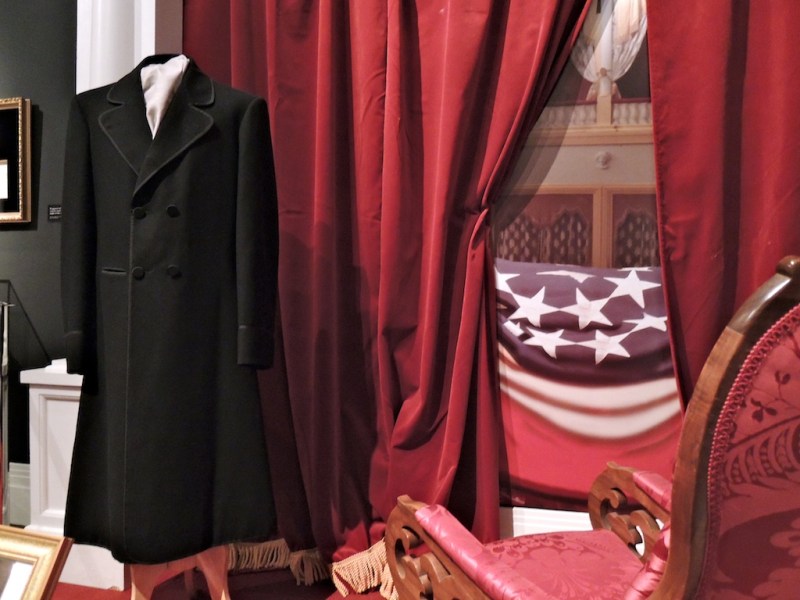Replica of Lincoln’s Brooks Brothers coat and rocker he was sitting in when he was assassinated