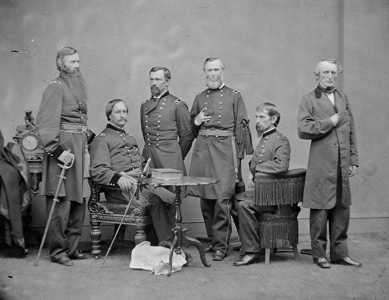 Part of the military commission which tried the Lincoln conspirators. Lew Wallace is seated, second from the right. NARA
