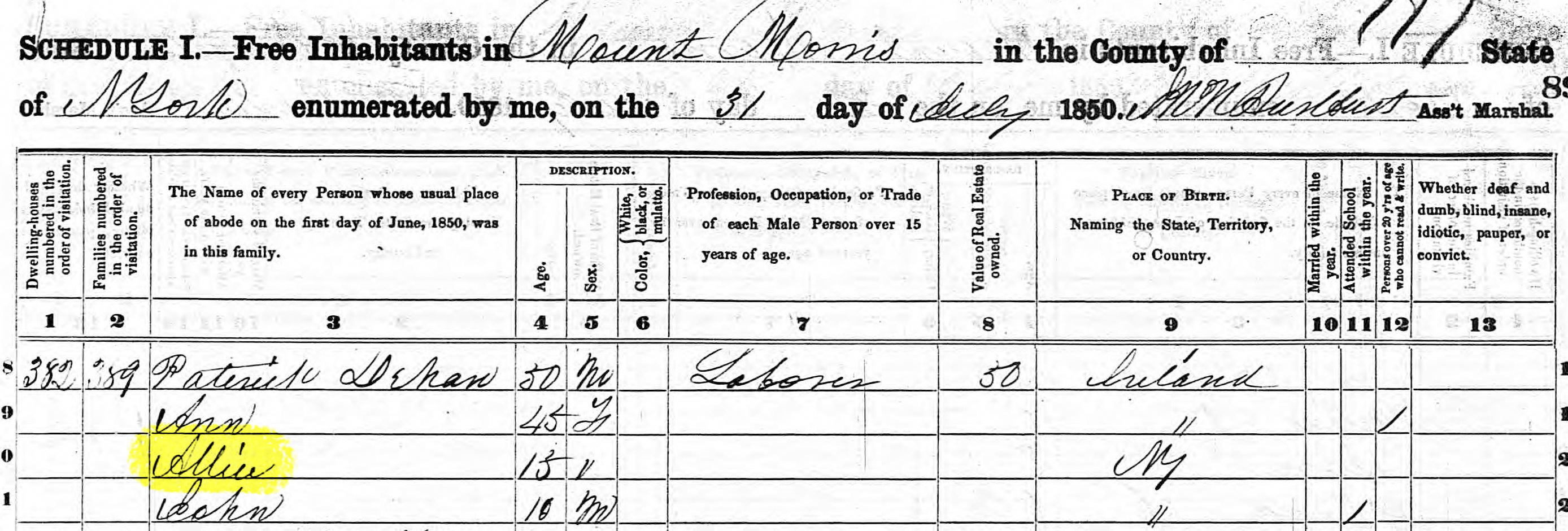1850 Census Alice Gray