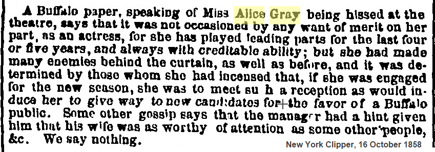 1858 reason for hiss Alice Gray