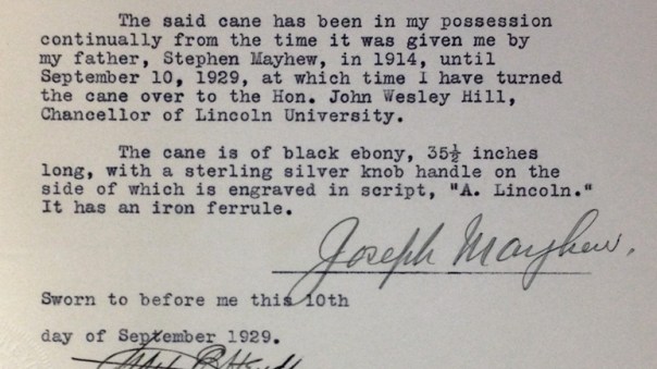 After recovering his property, Stephen Mayhew continued to own Lincoln’s cane. In 1914, Stephen gave the cane to Joseph. The elder Mayhew died in 1917.