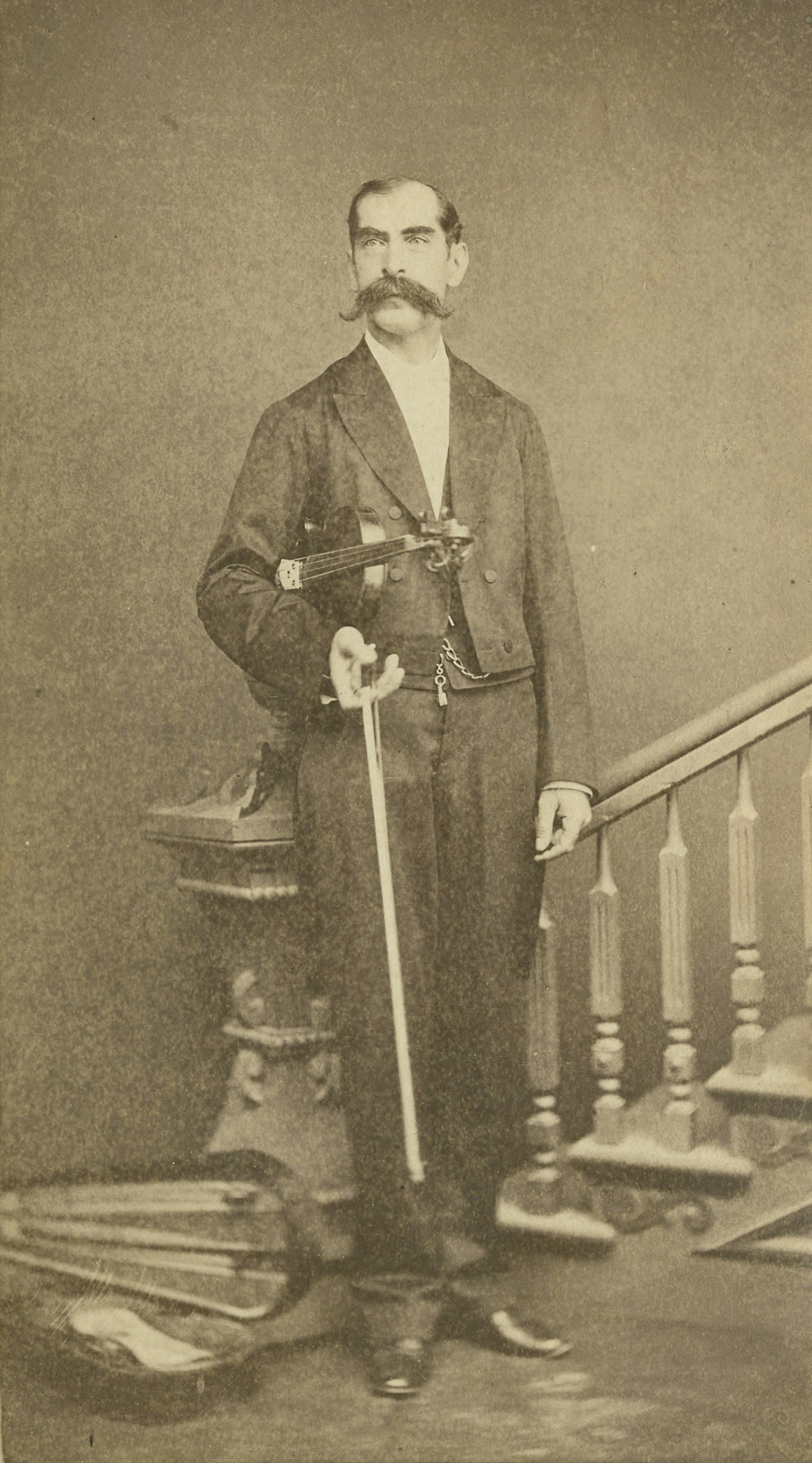 William Musgrif was born in England in 1812. After immigrating to America, he settled in New York. As a musician, Musgrif was skilled in both the violin and the cello, but seemed to have preferred the cello best. In 1842, Musgrif and his cello became founding members of the newly established New York Philharmonic. As part of the Philharmonic, Musgrif mentored younger players in the cello. By 1860, he, along with his wife and son, had moved to D.C., where he offered his skills as a music teacher. Musgrif was also the conductor for his own group in D.C. called the Mozart Society.