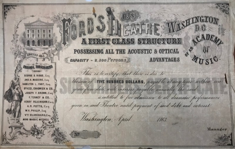 Ford’s Theatre Stock Certificate