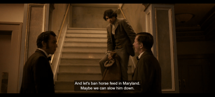 Did anyone else openly laugh at the idea that Stanton could single-handedly ban the sale of horse feed in the state of Maryland? Apparently, all horses in Maryland have to starve now because Booth escaped into that state on a city horse. It’s such a ludicrous and silly concept.