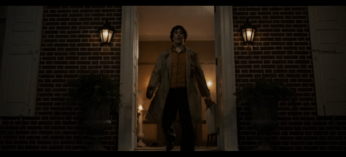 And with that, the long-awaited Manhunt miniseries begins. Before the title card comes up, we’re put straight into the action. We witness Lewis Powell’s attack on the Seward household before cutting back to Booth eyeing the President and First Lady as they arrive at Ford’s Theatre. We aren’t introduced to our leading man, Secretary of War Edwin Stanton, until after the title card fades, and he is alerted to a “break-in” at the Seward home. Then Booth arrives at the backstage door of Ford’s Theatre, where willing stagehand Ned Spangler accepts his duty to hold Booth’s horse even though he has some scene shifting to do inside. Meanwhile, Stanton arrives at the Seward home and sees the vast amount of bloodshed caused by the unknown assailant.
