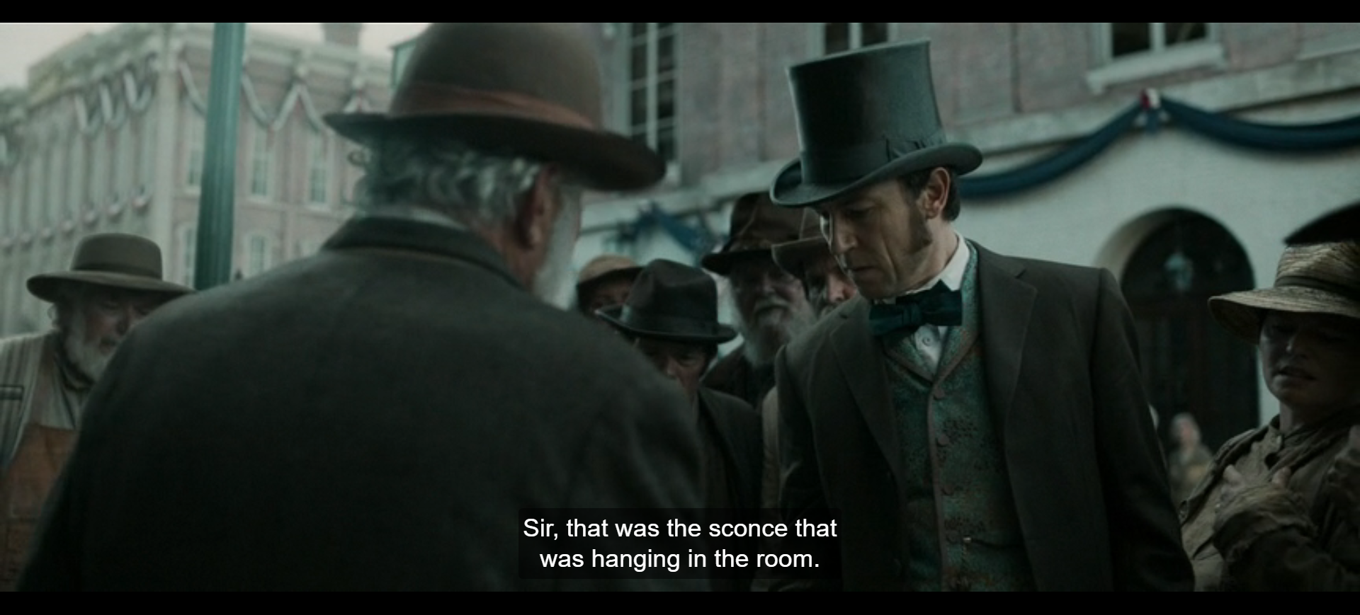 The person who found Booth’s derringer on the floor of the box was not Stanton but a man by the name of William Kent. This theater patron had made his way into the box after the shot and offered his penknife to Dr. Leale who used it to slice Lincoln’s shirt. After the unconscious President was removed to the Petersen House, Kent realized he had lost his house key during the chaos. He returned to Ford’s and searched the box for his key. Instead, he found the murder weapon. Lawrence Gobright, a member of the Associated Press, was in the theater at the time as well, and he took possession of the weapon from Kent. Gobright later gave the gun to the War Department. Despite Stanton’s claim in this episode that “This is a crime scene,” such a phrase would have been meaningless back then, and there was no real effort to secure the box. Another theater patron walked off with the wooden bar that Booth had used to wedge the outer door of the theater box shut. He took it home with him and even cut a piece off of it to give as a souvenir to a friend before authorities heard about it and sent men out to reclaim this piece of evidence. This practice of collecting and selling relics of the assassination is actually well demonstrated in the scene where Stanton chastizes a street vendor hawking Lincoln masks, playbills, and a sconce he swiped off a wall.