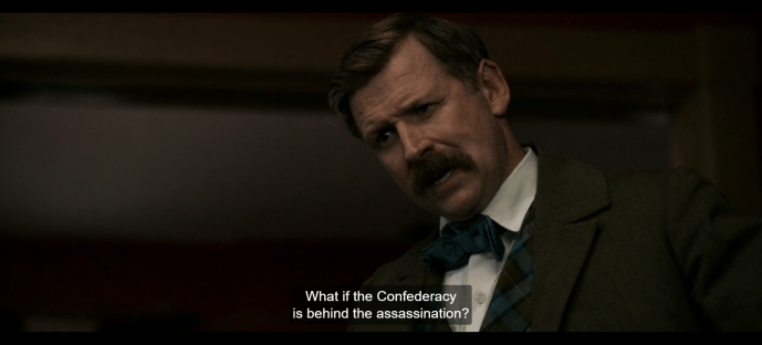 After reading this, you’ll understand my surprise at Conover making an appearance in this first episode. If he was going to show up at all, I figured it would be later when the trial of the conspirators was shown. Conover was a grifter and a liar who only wanted to milk the government for whatever funds by telling them exactly what they wanted to hear. At the time of the assassination, Conover/Wallace/Dunham was in Canada, not in Washington. He showed up sometime in the weeks after the murder with his valuable information to sell. Desperate for a smoking gun connecting Booth’s plot with Confederate leaders, Conover duped the Judge Advocate General into giving him funds to continue his own “investigations” in Canada. From what I can see on IMDB, it looks like Conover is going to continue to play a role in this series, at least in the first four episodes. So I guess we’ll see how this storyline plays out differently from the real Conover.