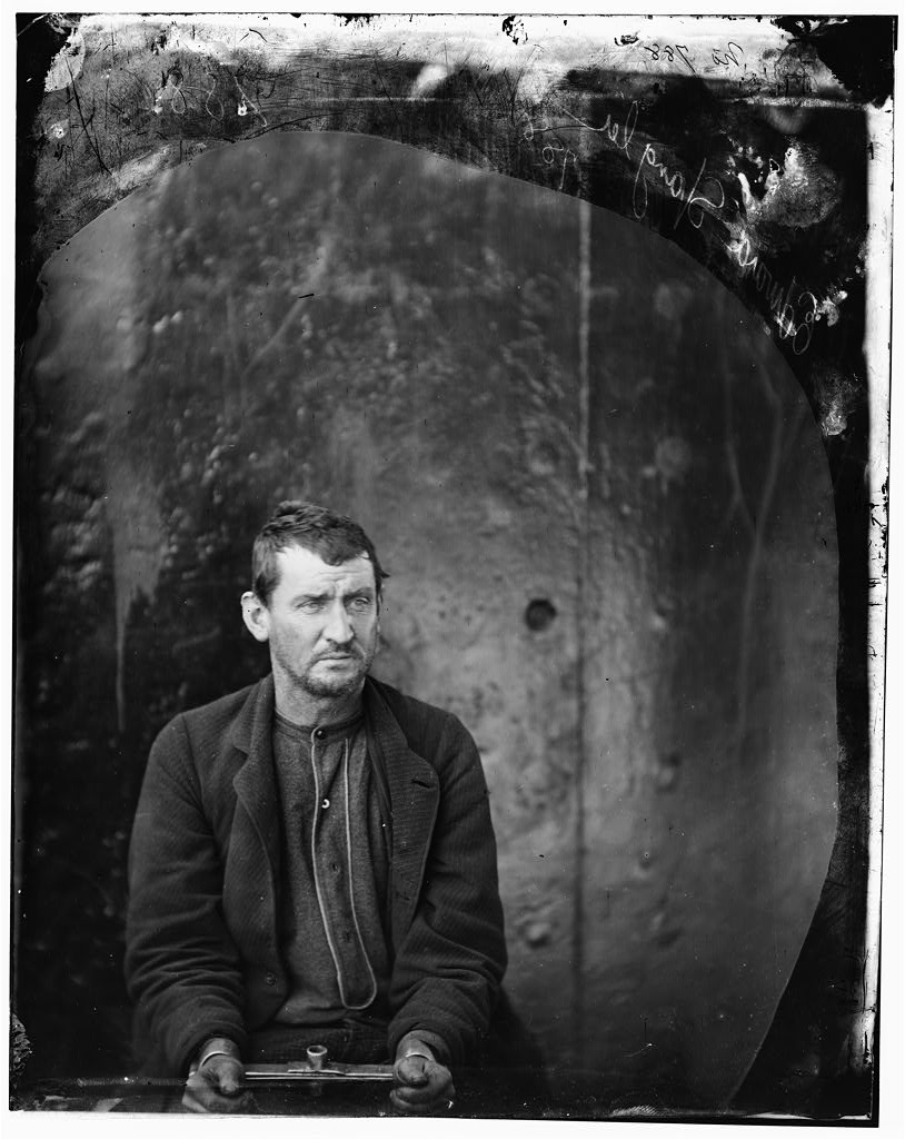 The two outfits of Lewis Powell. The left image shows how he was attired when he arrived at the Surratt boardinghouse on April 17 (minus the hat). The right image shows him wearing the outercoat he had worn while attacking Seward, which he later discarded.