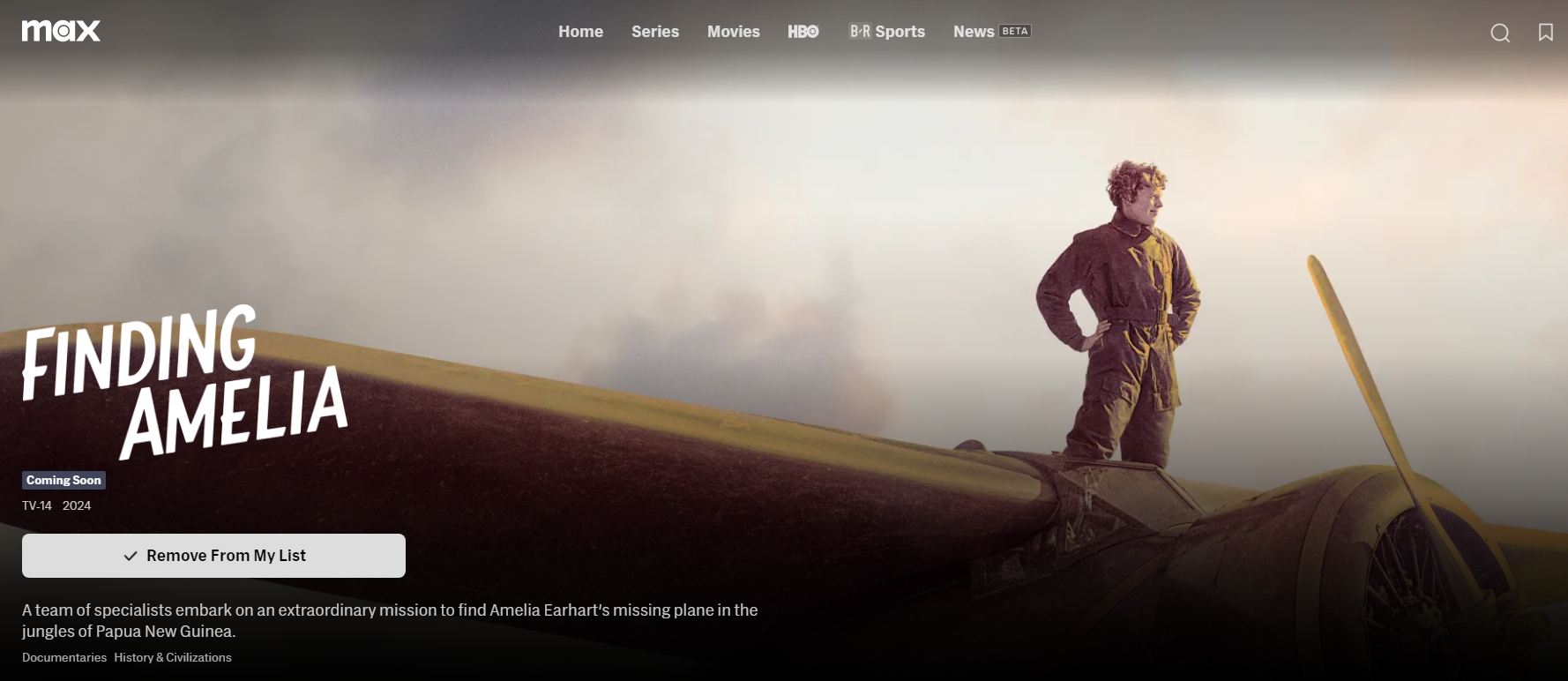 I will definitely keep an eye out for it on Max! We live just a few minutes’ walk from Fred Noonan’s last address in Oakland, CA.