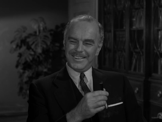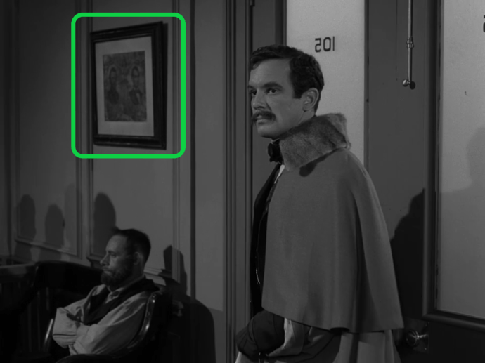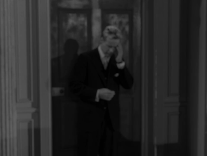 As a shocked and confused Corrigan walks out of the drawing room with his historic handkerchief in hand, Rod Serling’s voice provides the closing narration.