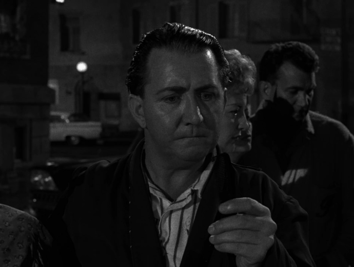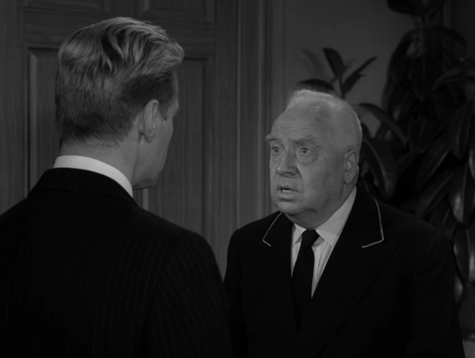 • When the camera pans over to Rod Serling as he gives the opening narration, he is seen seated in an armchair and reading a newspaper. The newspaper he is reading is “The Daily Journal,” a fictional prop newspaper. We’re all familiar with the TV and movie trope of a shot of a newspaper with a headline about a plot point in the drama. While this main story is often unique to a specific production, the same secondary articles can be found over and over again across many movies and shows. In Serling’s newspaper, some of the article titles include “Three Persons Die in Crash,” “Northside Hospital Building Fund Nears Goal with State Support,” “Bids Given on Bridge Project,” “Move to Ban Office Mergers is Begun,” “Fire Destroys State Aresnal, “$60,000 Damage in Gigantic Eastside Warehouse Fire,” and “Firemen, 18, Hurt as Engine Upsets.” If you image search any of these article titles, you will find their appearance not only in other Twilight Zone episodes but in many other shows and movies. For example, fictional newspapers containing the story “Northside Hospital Building Fund Nears Goal with State Support” can be found in movies like The Day the Earth Stood Still, Breakfast at Tiffany’s, and The Godfather.