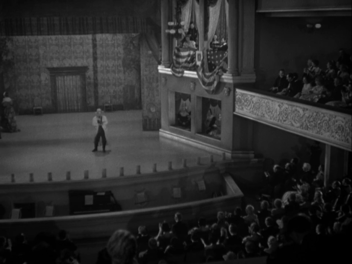 There are four shots in “Back There” that utilize footage from another production. These consist of two shots showing the interior of Ford’s Theatre during Our American Cousin and two shots of a crowd ostensibly on the street outside Corrigan’s window announcing the news that the President has been shot.