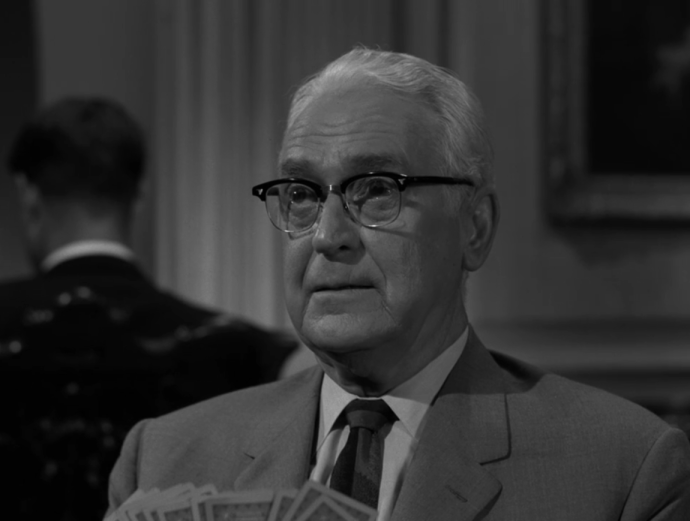 It’s fitting that the most vocal of Corrigan’s rich friends at the posh Potomac Club, Millard, was portrayed by Raymond Bailey, as his most famous role was that of the miserly banker Milburn Drysdale from The Beverley Hillbillies. Bailey portrayed Mr. Drysdale in 248 episodes of the show from 1962 – 1971. Bailey had made his screen debut in small uncredited film roles back in 1939. During WWII, he served in the United States Merchant Marines. His first television role occurred in 1952. “Back There” was Bailey’s second of three appearances in The Twilight Zone. He had earlier appeared in season one’s “Escape Clause,” playing the abused doctor of the hypochondriac main character. He later returned in season five’s “From Agnes – With Love,” playing the supervisor of the master programmer who takes love advice from a computer. In 1956, Bailey played the role of Secretary of War Edwin Stanton in the live television production “The Day Lincoln Was Shot” on the anthology series Ford Star Jubilee (my thanks to Richard Sloan for cluing me in on this fact). Raymond Bailey began experiencing memory issues near the end of The Beverly Hillbillies and only appeared twice more on screen after the series ended. He died on the anniversary of Lincoln’s death, April 15, 1980, at the age of 75.