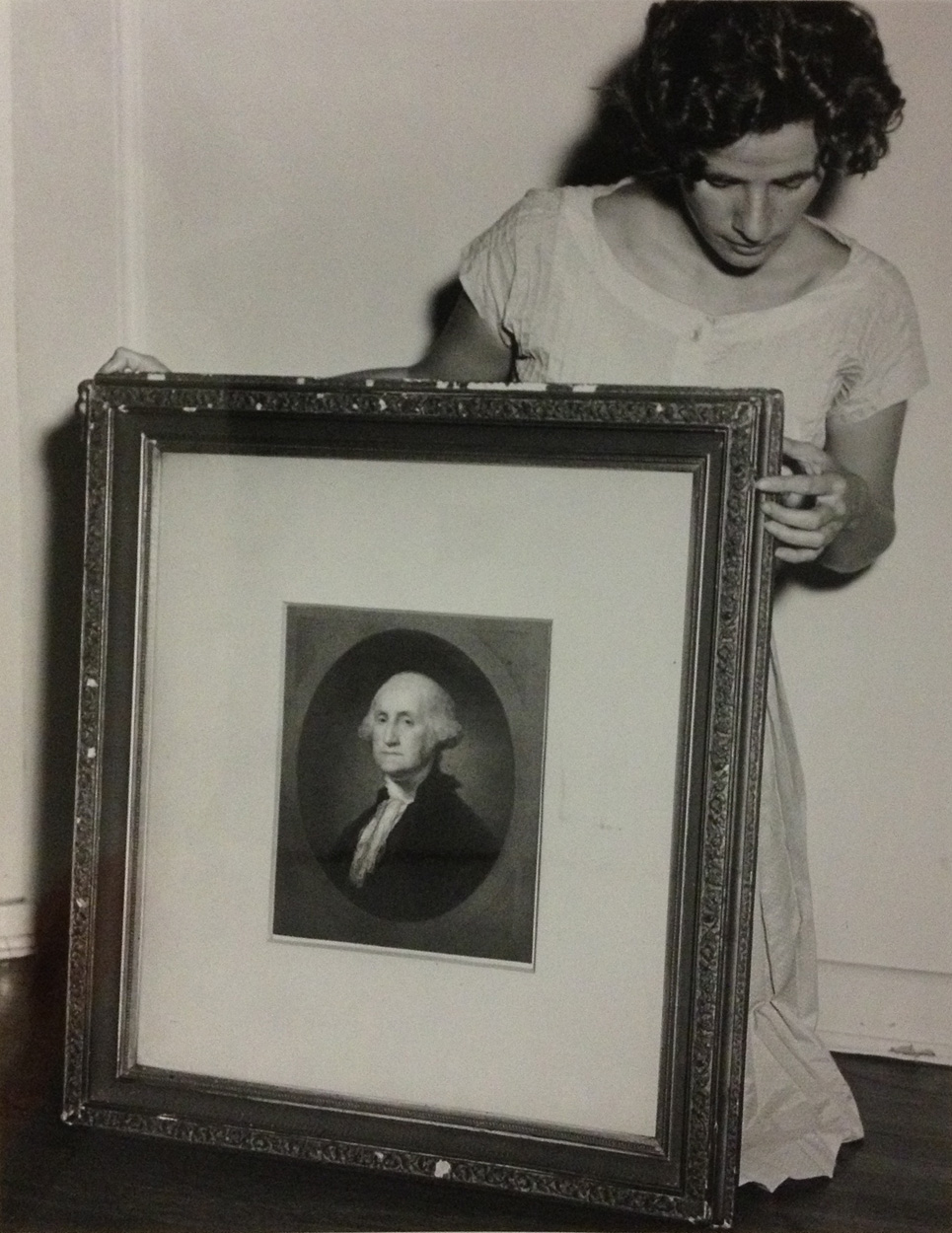 • One of the portraits hanging near the flag is a copy of Gilbert Stuart’s Athenaeum Portrait of George Washington. The original painting was done from life in 1796, but was left unfinished by Stuart.