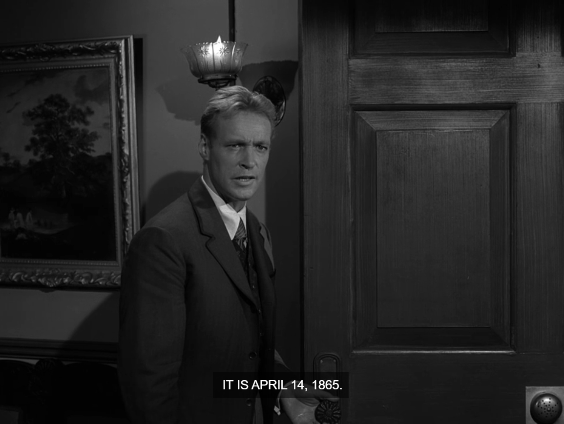 Last month, I published a post containing an episode of The Twilight Zone Podcast in which the host, Tom Elliot, included two radio shows based on the concept of time travel and the assassination of Abraham Lincoln. That podcast episode was a prelude to Tom’s regular review of “Back There,” an episode of The Twilight Zone, which deals with the very same topic. I very much enjoyed listening to both of Tom’s podcasts, and they inspired me to do my own analysis of one of my favorite episodes of this iconic series. What follows is an exploration of “Back There,” containing an overview of the episode, biographies of the actors who took part in it, a look into the production and editing, some trivia, and a discussion of some other adaptations of this unique Lincoln assassination-related show. While the following post isn’t quite as “vast as space, or as timeless as infinity,” it is still quite a deep dive. If you’re ready for such an adventure into the fifth dimension, then read on as we travel “Back There” with The Twilight Zone.