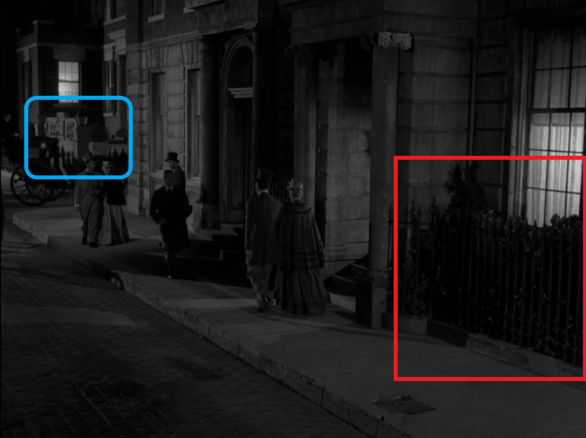 Looking at the period decor in the building that was once his home, Corrigan starts to realize that something is greatly amiss. He asks Mrs. Landers if she has a room in which he can stay. She replies that she does, but only for acceptable boarders. She proceeds to ask Corrigan a series of questions, including inquiring if he is an army veteran. This comes as a bit of a non-sequitur to Corrigan, but he still replies in the affirmative. When he tells Mrs. Landers that he is an engineer, her demeanor completely changes at the thought of a “professional man” lodging in her home. She begins to offer Corrigan a room upstairs when they are interrupted by a couple coming down who greet Mrs. Landers. The elegantly dressed woman confirms that she and her husband, a soldier in a Union officer’s uniform, are having dinner at Willard’s and are then “off to the play.”