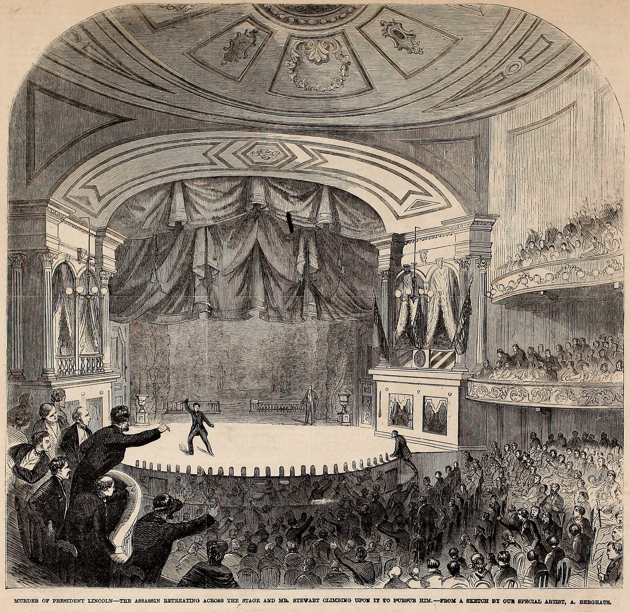 Albert Berghaus illustration of inside Ford’s Theatre from Frank Leslie’s Illustrated Newspaper, May 20, 1865