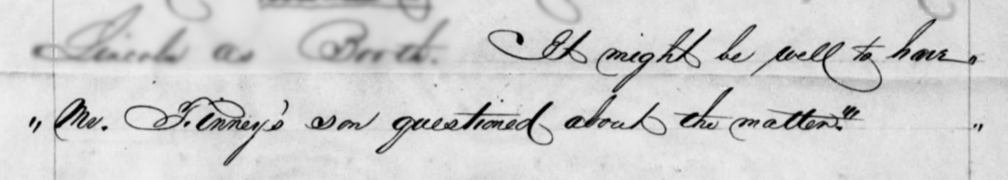 With the permission of Col. John Foster, one of the special commissioners engaged in investigating the assassination, William Cook interviewed David Finney at his father’s home on the corner of 9th and H Streets. Finney, who was about 15 years old at the time, described to Cook that while he did not recall any disloyal statements from Lamb when the Confederate capital fell, he did recall Lamb chastizing some revelers on the night of the Grand Illumination to celebrate the Union’s victory on April 13th. David Finney pointed out that Frank Drake was more acquainted with the people in the theater since the doctor’s son was “allowed to sell ‘gumdrops’ etc. in the building.”