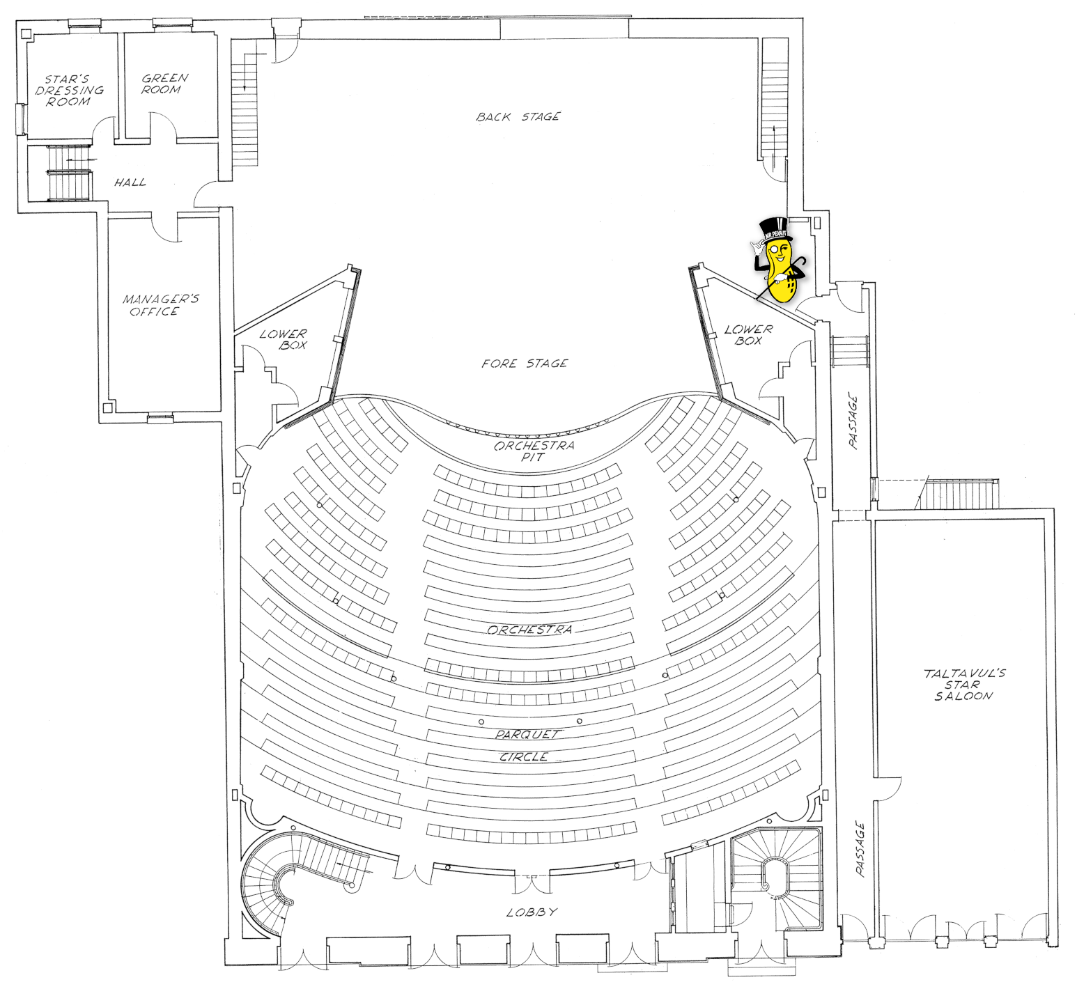 Location of Peanut John’s normal station, guarding the stage door at Ford’s Theatre