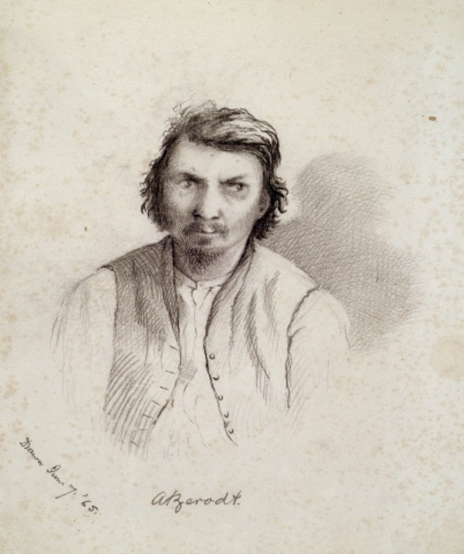 Courtroom sketch of George Atzerodt done by military commission member Gen. Lew Wallace.