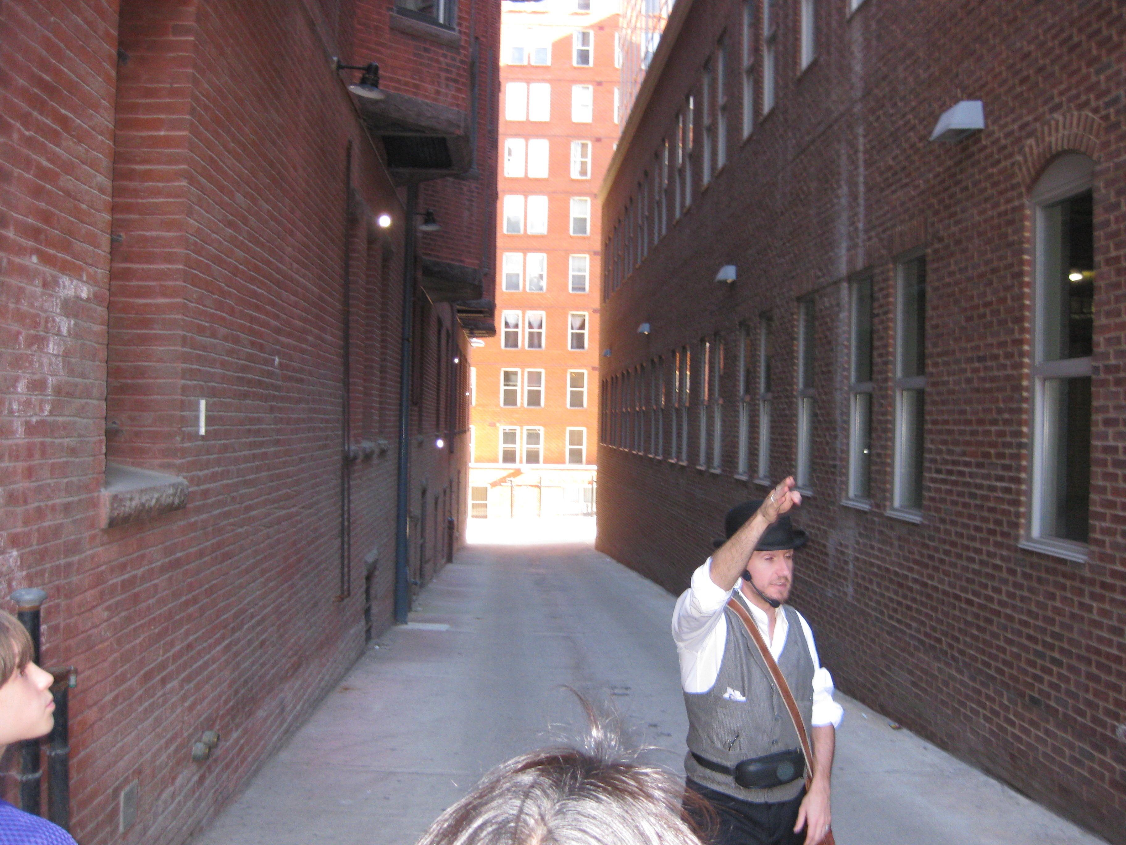 A trip down Baptist Alley behind Ford’s led by an actor portraying Det. James McDevitt. Booth escaped the back of Ford’s Theatre via a stage door and mounted his horse. He escaped out of Baptist Alley onto F street.