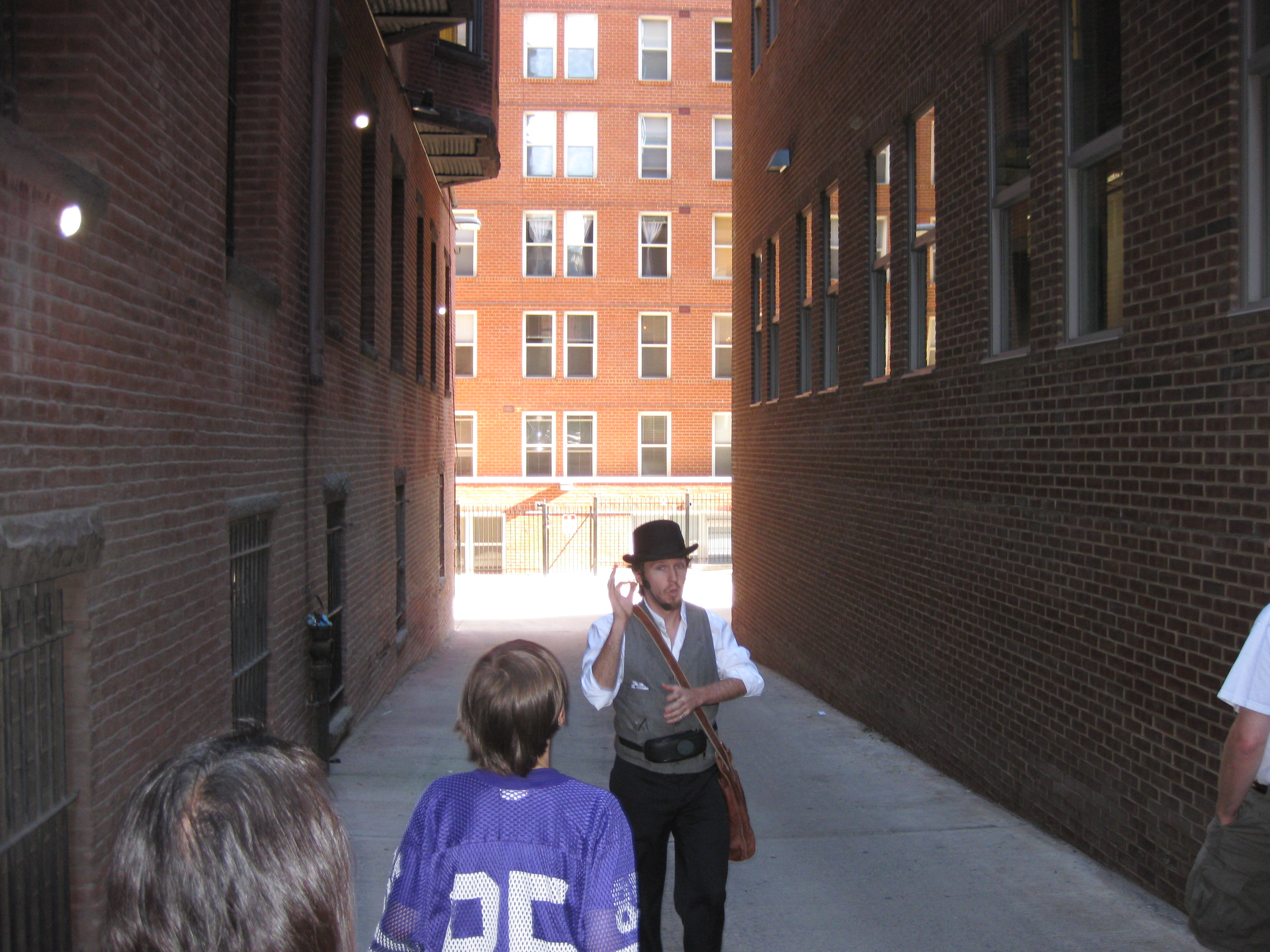 A trip down Baptist Alley behind Ford’s led by an actor portraying Det. James McDevitt. Booth escaped the back of Ford’s Theatre via a stage door and mounted his horse. He escaped out of Baptist Alley onto F street.