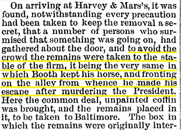 2. Is this the family that had Booth’s remains? What year did were they permitted to take his body? I also find it odd but fascinating that they ended up hiding his body in the same stable Booth had kept his horse at Ford’s Theatre. Was this the path they would have taken from where his body was originally interred to where his final resting place would be? By the way, I love that I found this site…it is the most informative and interesting site I have found on this subject! Great work!