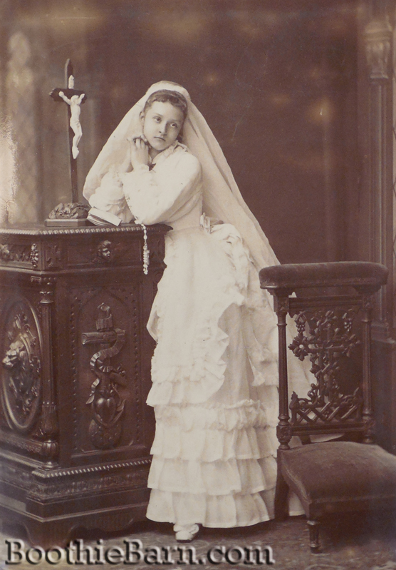 Asia “Dollie” Clarke, the eldest daughter of Asia Booth and John Sleeper Clarke, wearing her confirmation dress. Image Source: NYPL