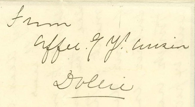 Signature of Asia “Dollie” Clarke, the eldest daughter of Asia and John Sleeper Clarke. Image Source: Taper collection