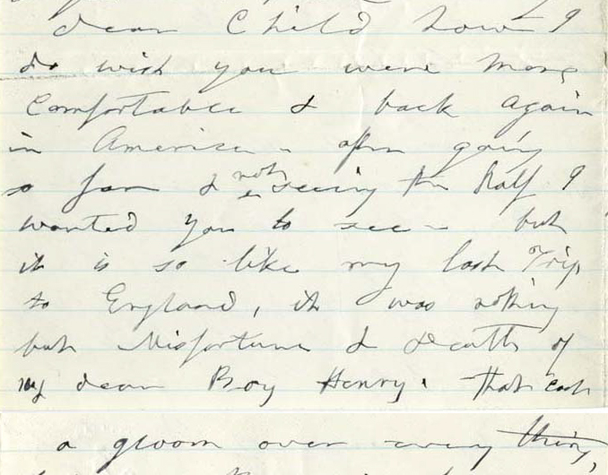 Letter from Mary Ann Booth to her granddaughter Edwina who is visiting London. In this letter Mary Ann recounts the loss of Henry Byron the last time she visited London. Image Source: ALPLM