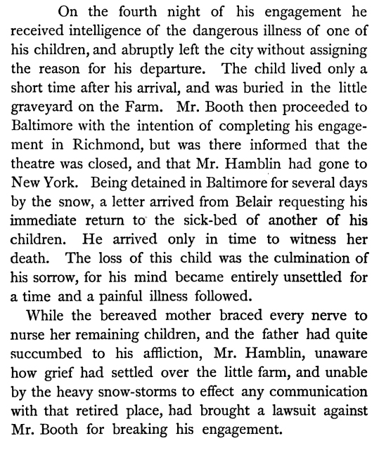 An account of Junius Brutus Booth hearing about the illness and death of his young children, Elizabeth and Mary Ann. They booth died in 1833. Image Source: The Elder and Younger Booth by Asia Booth Clarke