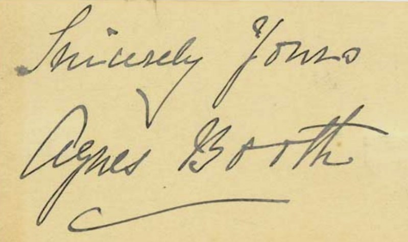 The signature of Junius Brutus Booth, Jr.’s third wife Agnes Booth. Image Source: ALPLM