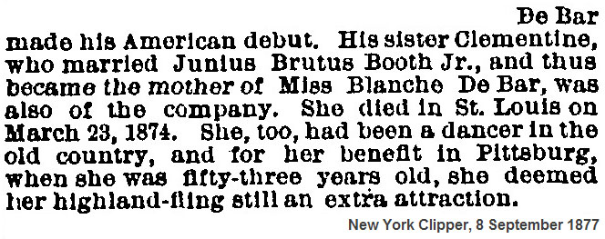 Description of Clementina DeBar, Junius Brutus Booth, Jr.’s first wife. Image Source: New York Clipper