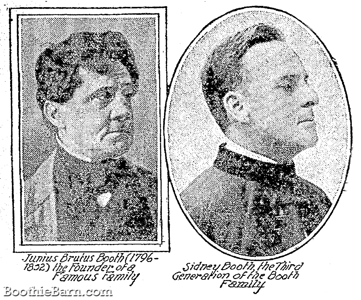 Newspaper article comparing Sydney Barton Booth and his grandfather Junius Brutus Booth, Sr. Image Source: GenealogyBank.com