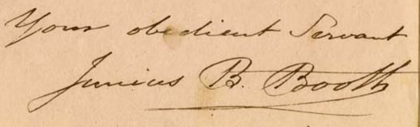 Signature of Junius Brutus Booth Image Source: Abraham Lincoln Library and Museum